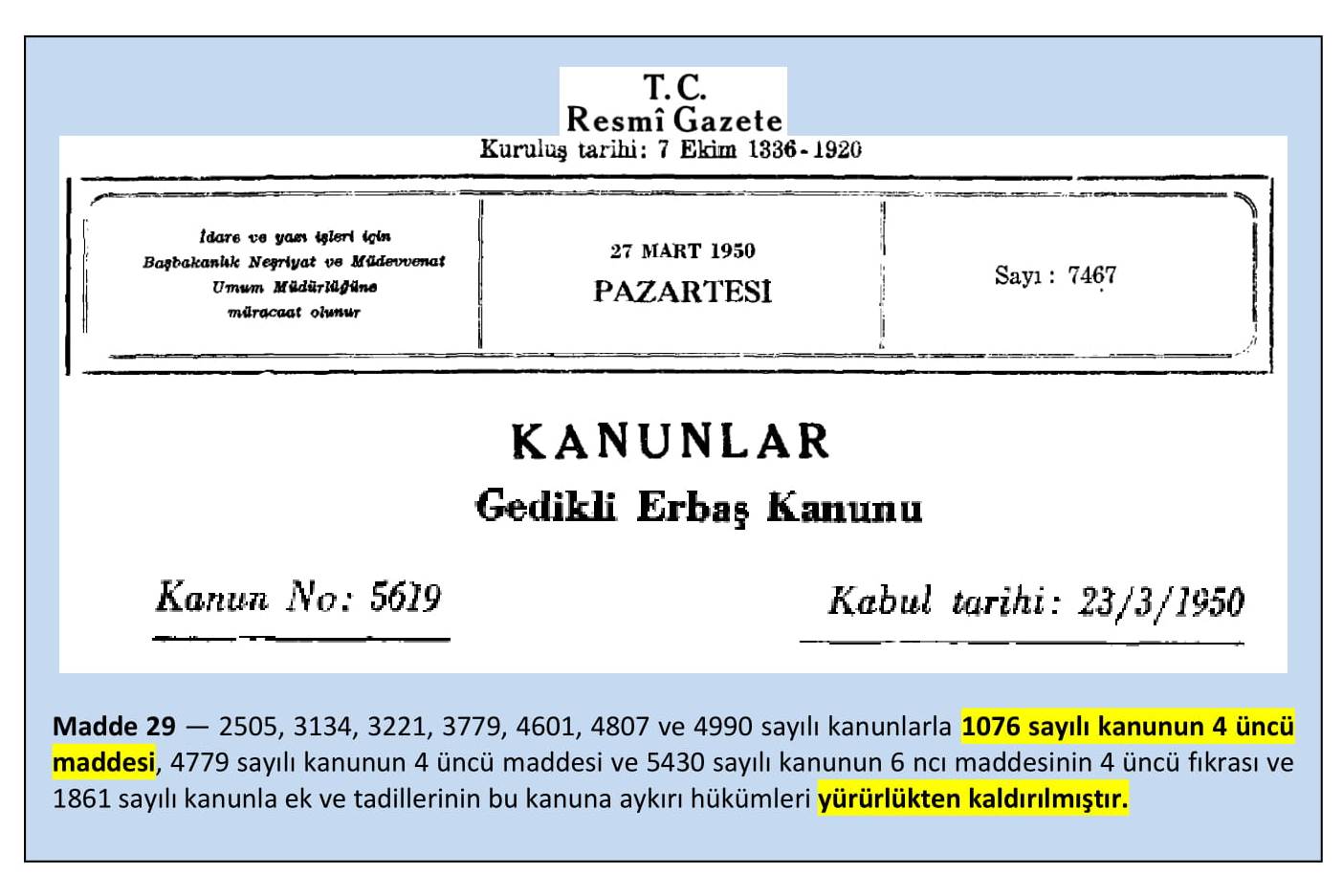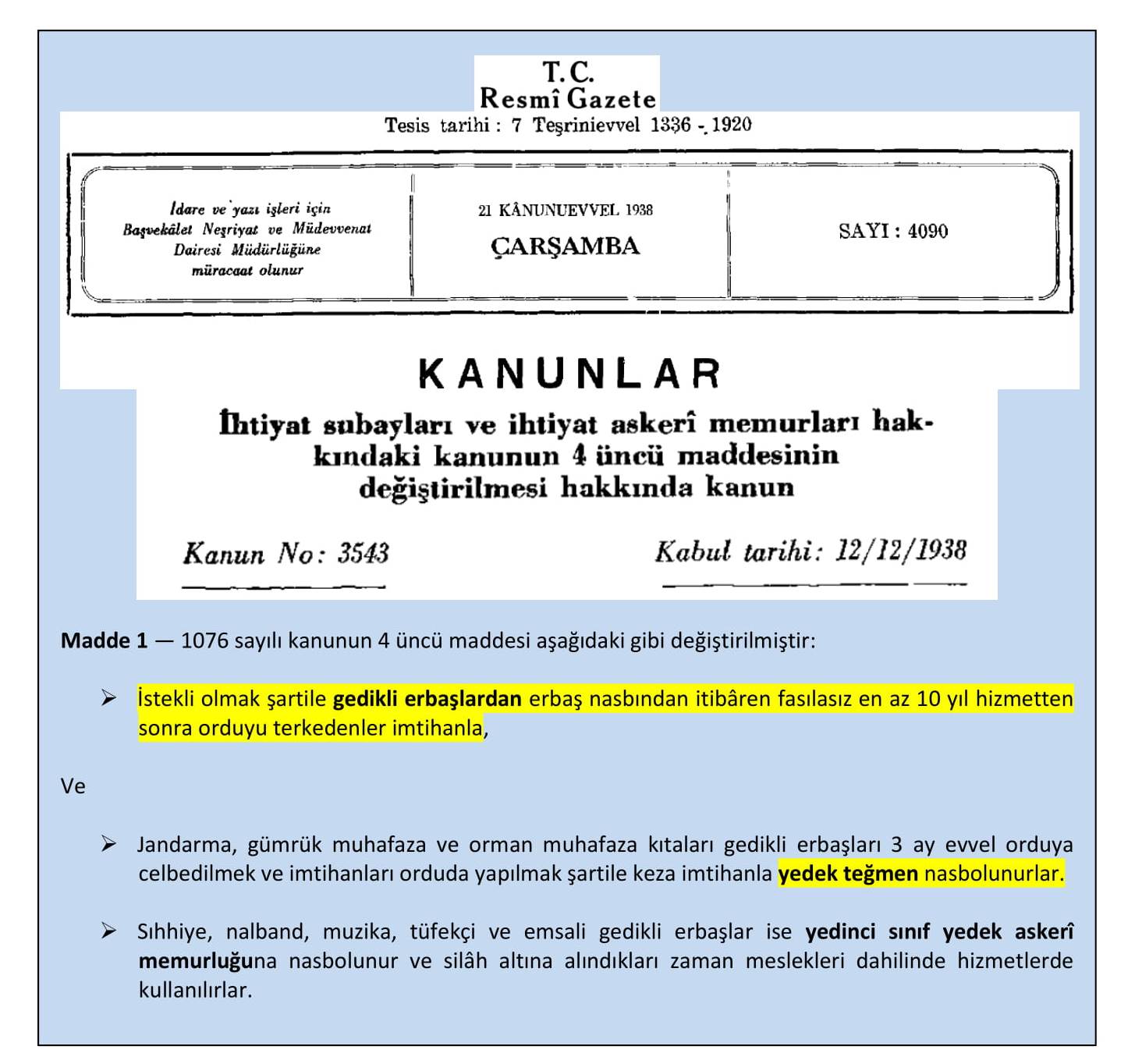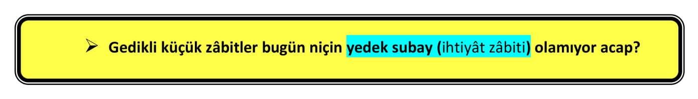 Bu kânundaki “gedikli küçük zâbit” ibâresi bugün de aynı şekilde kendi hükümünü sürüyor…