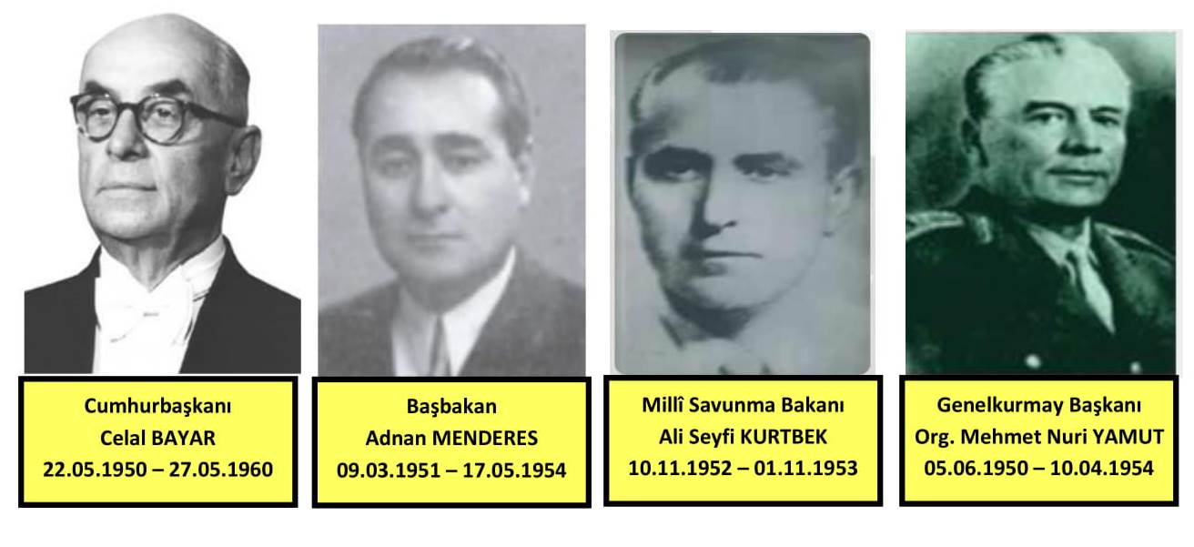 Cumhurbaşkanı Mahmut Celâl BAYAR ve Başbakan Adnan MENDERES’in idâresindeki hükûmet,