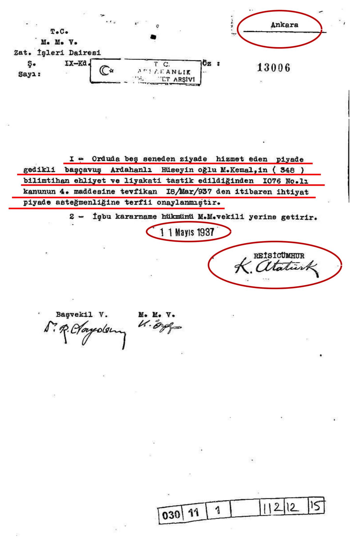 Bu kânundan neşet eden hakkını kullanan gedikli küçük zâbitlerin, ihtiyât mülâzımlığına terfi edildiğine dâir belgeleri