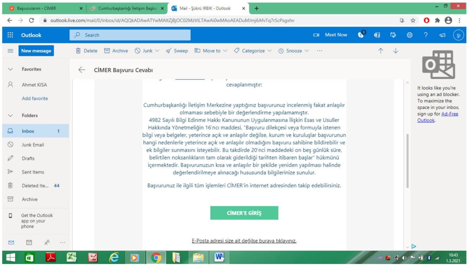 - Şükrü IRBIK’ın 11 Ocak 2021 târih, 2100186325 Sayı ve “MSÜ Kara Harp Okulunun Kuruluş Amacı Hakkında” konulu CİMER dilekcem.