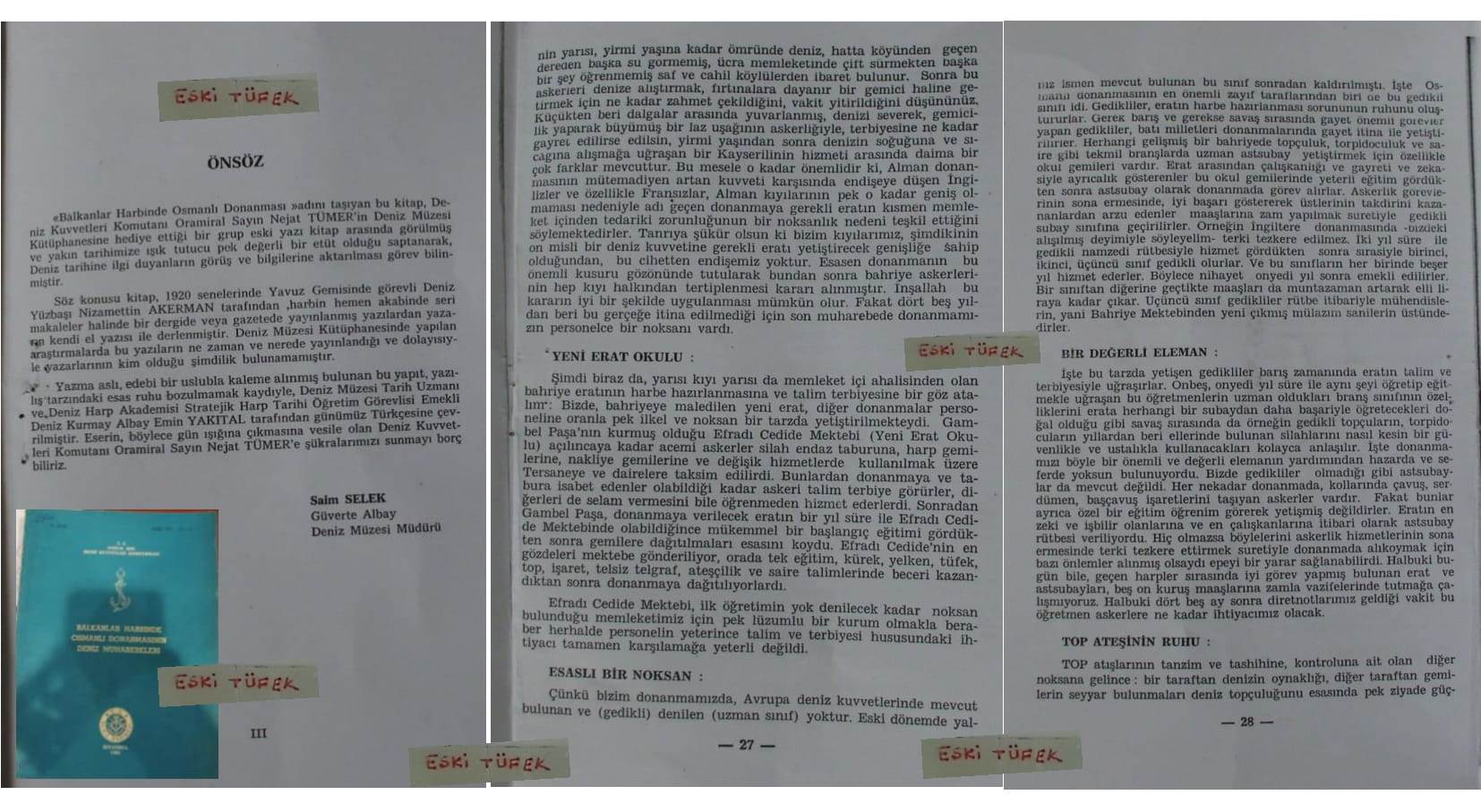 - Deniz Gedikli Küçük Zâbit İhzârî Mektebi Kabul Talimâtı. T.C. Büyükerkânıharbiye Reisliği, XII.Dz.Ş. İstanbul Deniz Matbaası-1929.