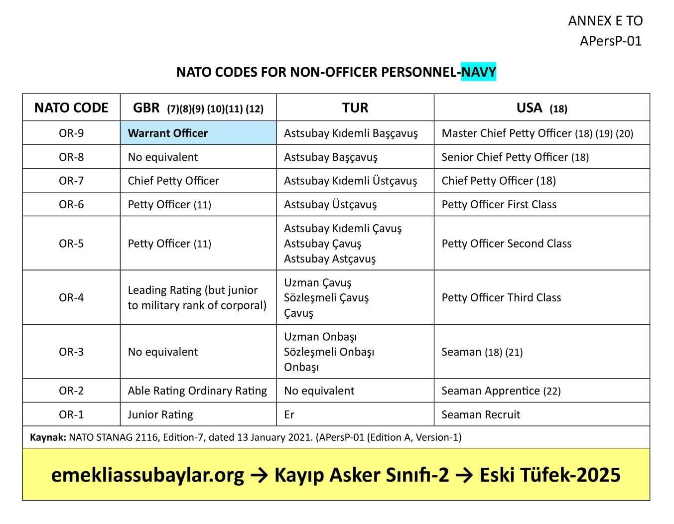 - “Deniz astsubay” sınıfına “nakil” etmiş.