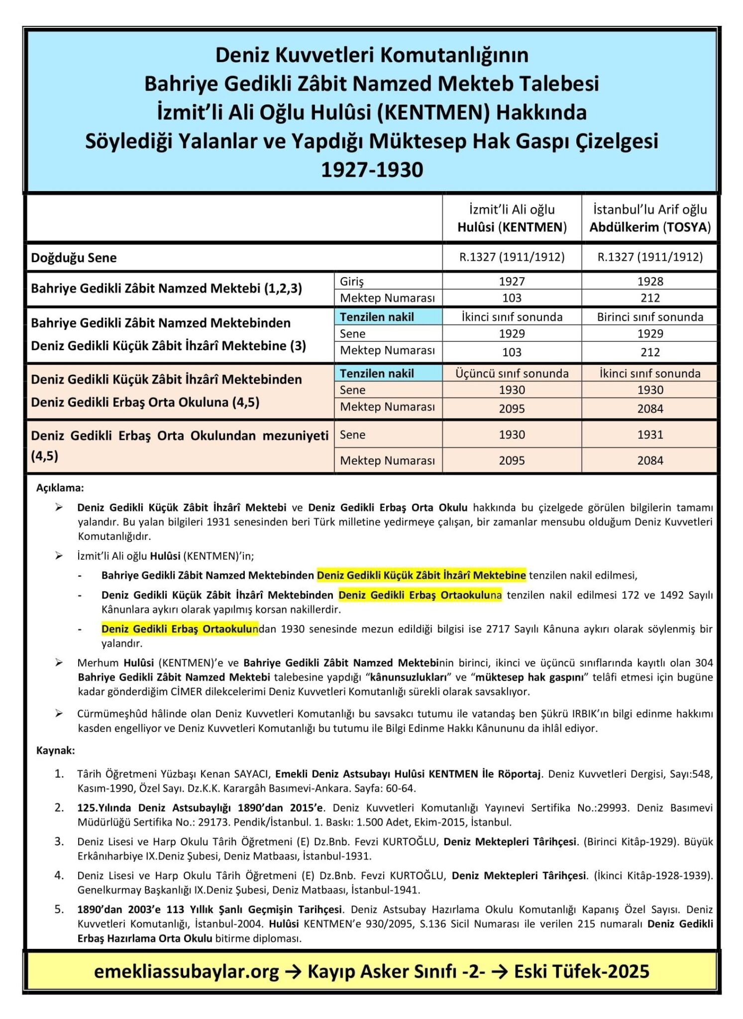 - Şükrü IRBIK’ın 02 Şubat 2022 Târih, 2200565015 Sayı ve “Deniz Astsubay Meslek Yüksekokulu Târihcesinde Mezkûr “Deniz Gedikli” ve “Deniz Astsubay” Sınıfları Hakkında” konulu CİMER dilekcesi.