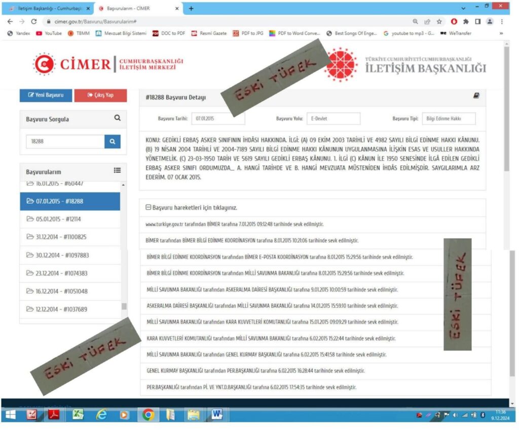 - Şükrü IRBIK’ın 18288 Sayı, 07 Ocak 2015 Târih ve “Gedikli Erbaş Asker Sınıfının İhdâsı hakkında” konulu BİMER dilekcesi.